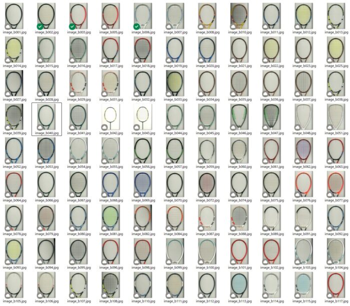 ラケット本来の性能をご提供できますよう、画像比較よる張り上げラケットの変形検証を行っております。